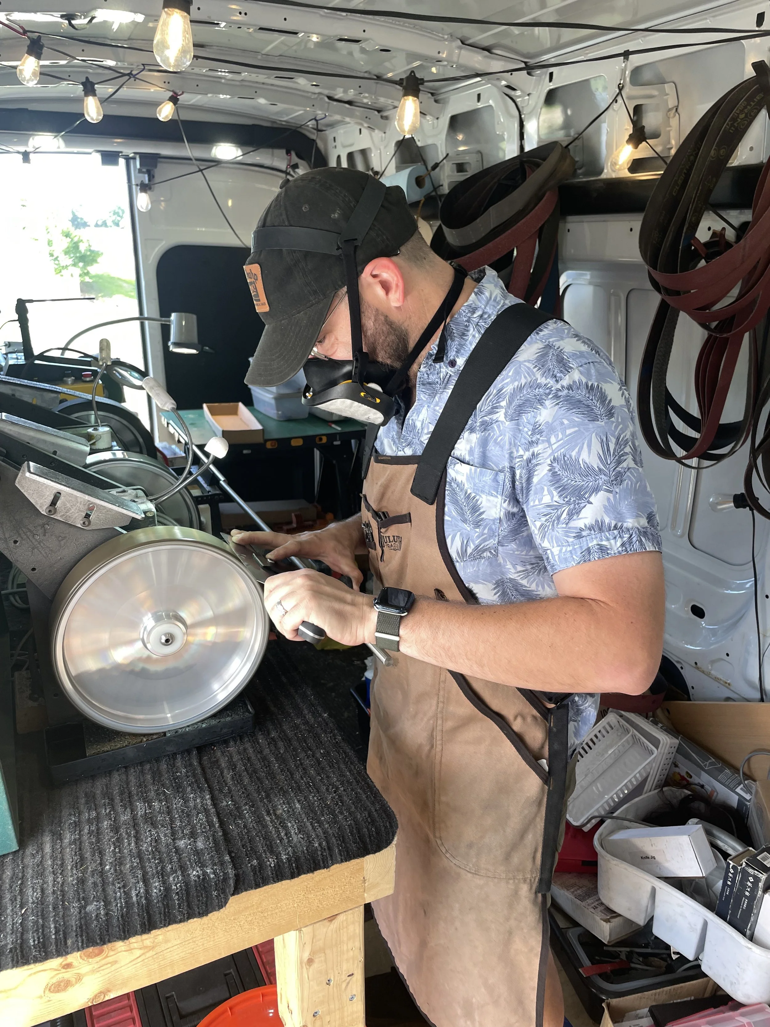 We come to your home or business in our mobile sharpening workshop and sharpen on-site.
